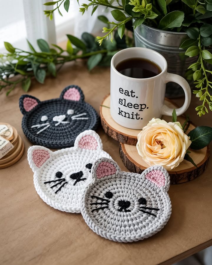 Crocheting cat-themed coasters is a relaxing and rewarding experience. The beauty of this project lies in its simplicity—you only need basic crochet stitches and a small amount of yarn.