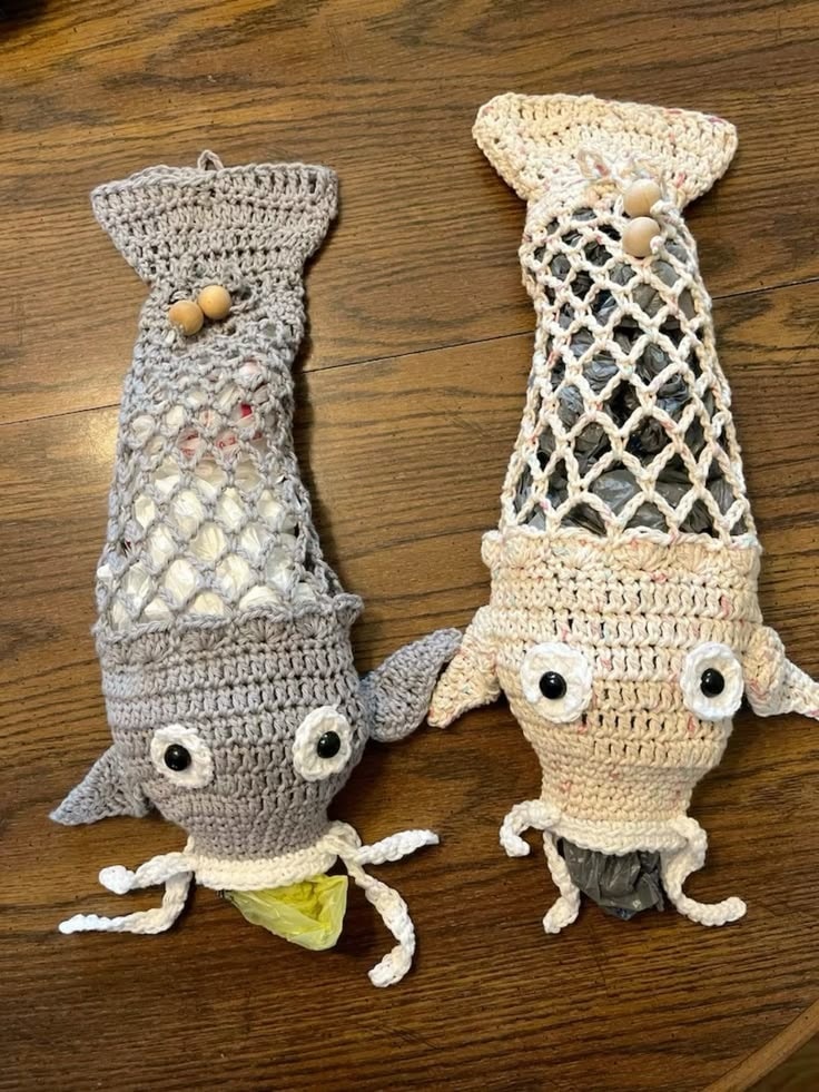 Consider crocheting smaller versions for kids’ rooms or laundry areas, turning them into cute toy storage instead of bag holders. Another idea is to make a set of aquatic-themed holders—like a catfish, octopus, and whale—for a complete ocean-inspired decor.