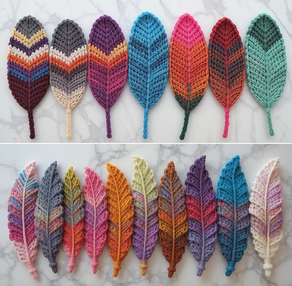 The versatility of crochet reversible feathers allows them to be used in a wide range of creative projects. One popular application is as embellishments for scarves or shawls. The double-sided design ensures that the feather looks beautiful from all angles, making wearable items more attractive and unique.