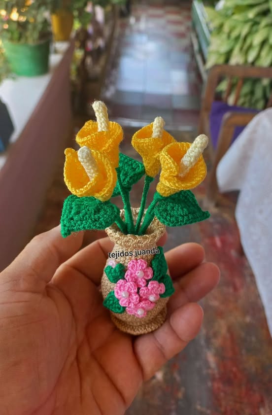 The Delicate 3D Mini Vase with Crocheted Alcatraz Flowers is a charming and creative project that combines artistry, patience, and passion for handmade crafts.