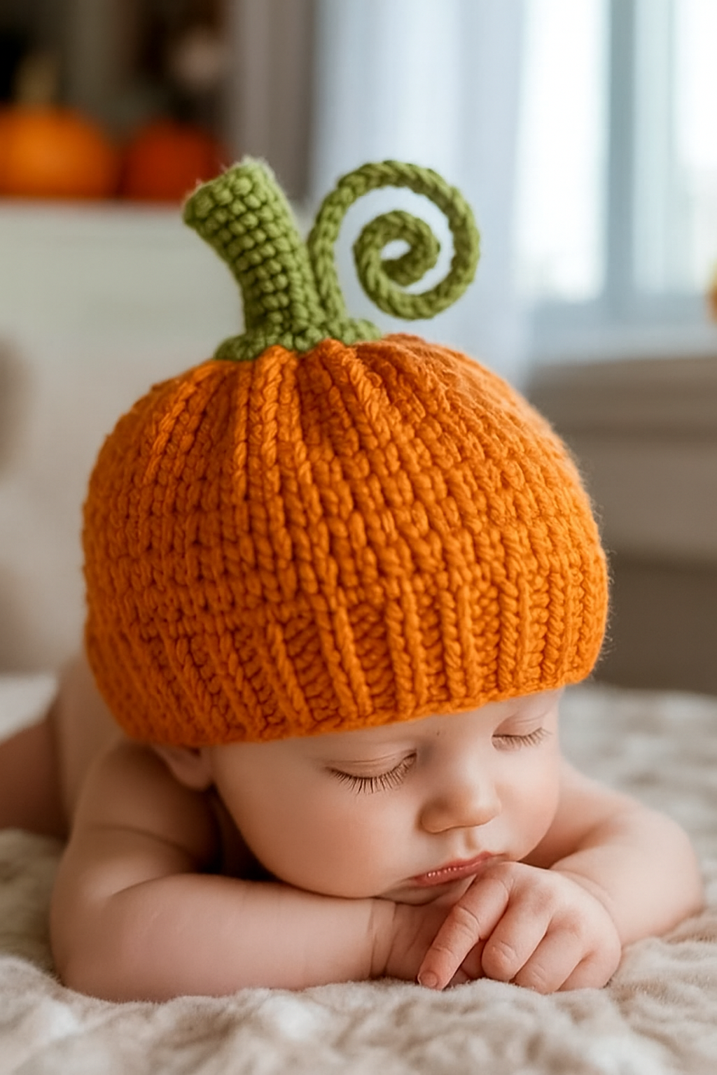 Designed to resemble a plump pumpkin, this hat is ideal for Halloween, fall photoshoots, or simply as a cute everyday accessory.
