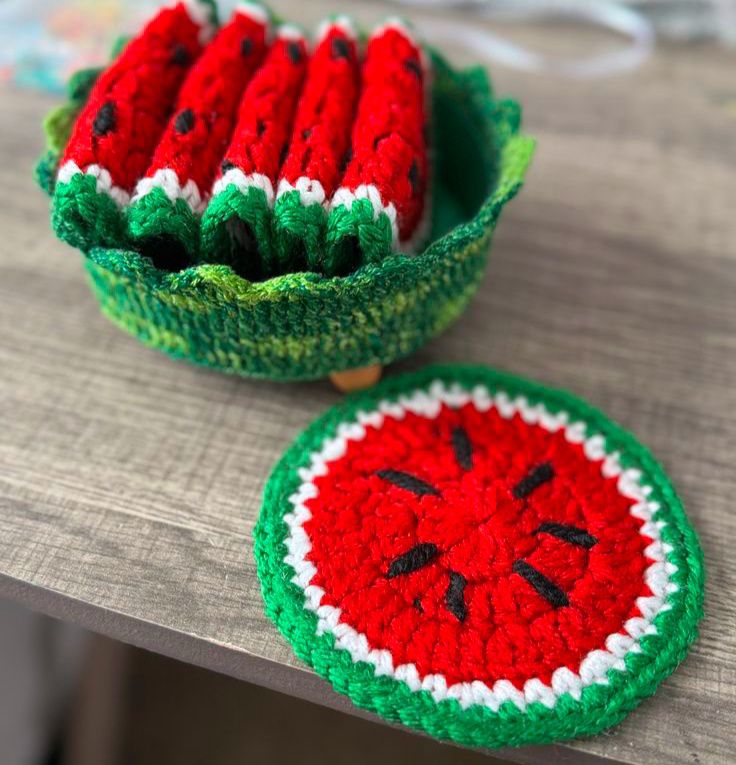 Crochet coasters are practical, easy to make, and allow you to express your creativity with colors and textures. The watermelon design adds a refreshing and playful touch to your décor, making every gathering feel more cheerful and inviting.
