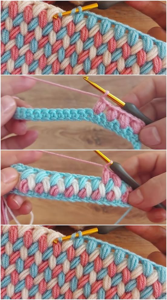 Beginners might find the stitch challenging at first, but with practice, it becomes an enjoyable and rewarding technique. Each puff stitch adds volume and a soft texture, while the zigzag design adds movement and rhythm to your work. Once you get comfortable with it, you can even create variations that include color changes, adding even more creativity to your projects.