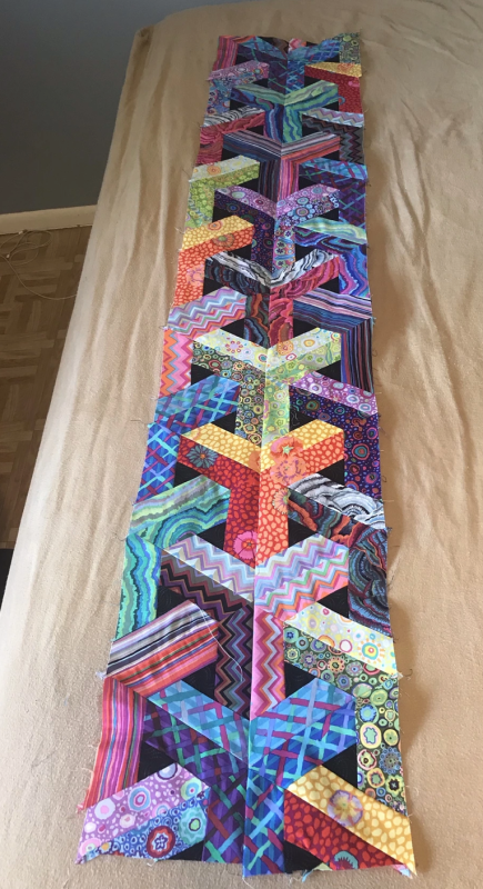 The size depends on your project goal. You can make anything from a wall hanging to a full bed quilt. Adjust the size of each cube block to control the final dimensions.