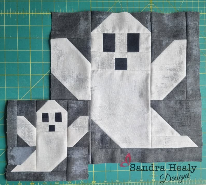 This block can also be scaled up or down, depending on your project. A single large ghost block makes an adorable pillow cover or mini wall quilt, while several smaller blocks combined together create a charming patchwork quilt. The versatility of this design is one of its greatest strengths—it invites creativity while maintaining a clear structure.