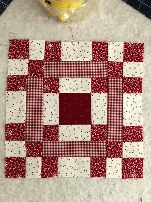 When the sewing is complete, give the finished block a final press. Admire the clean lines, balanced symmetry, and vivid color contrast of your completed Red & White Checkerboard Frame. It’s a beautiful and versatile block that can stand alone or form part of a more intricate design.